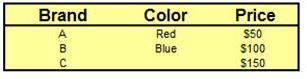 The marketer lists all of the available choices that a consumer has for one product. The marketer starts by listing all of the overall attribute categories such as color and add-ons. The marketer then lists all of the available choices within each attribute category. For example, here the marketer would be listing all available colors and add-ons.