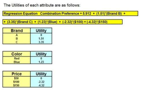 The Utility for each product attribute is derived directly from the coefficients of the resulting regression equation.